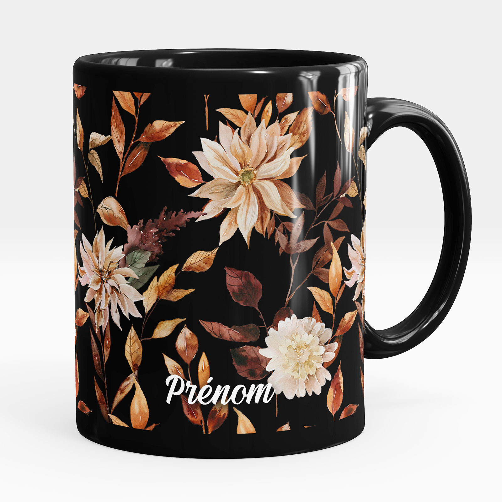 Taza personalizada totalmente negra - Flores
