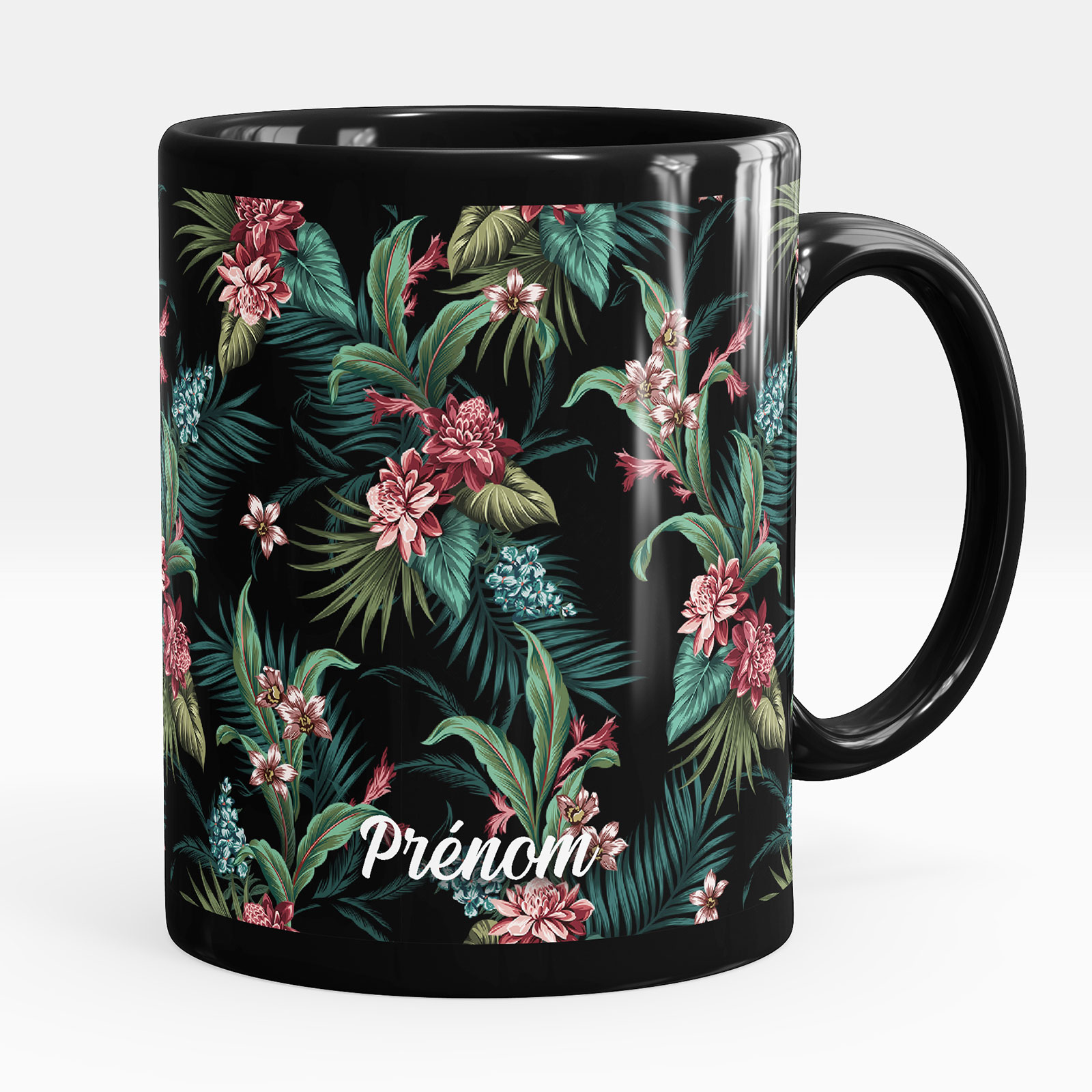 www.lumalea.es > Tazas / Botellas > Tazas Negras Integrales Adultos > Taza personalizada totalmente negra - Flores