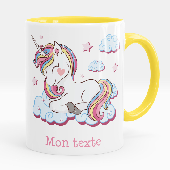 Una taza con asa y en el interior a elegir entre blanco o color, en la que puedes agregar un nombre o un pequeño mensaje para darle un toque de originalidad... ¡Una idea de regalo creativa para todas las ocasiones!