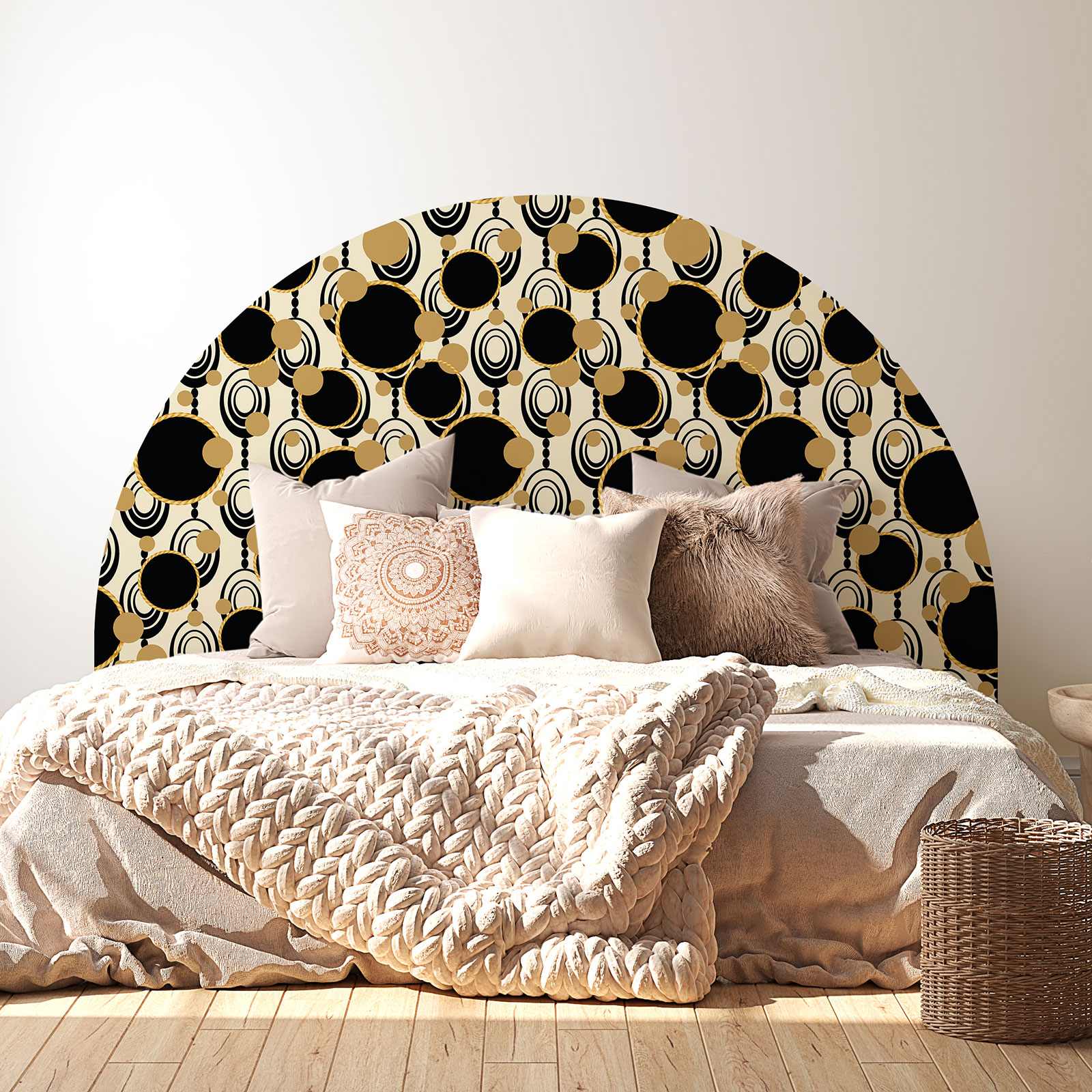 Transforma tu dormitorio en un espacio de ensueño con nuestros adhesivos murales decorativos en forma de arco para cabecero. Esta solución elegante y fácil de usar añade un toque de sofisticación a tu espacio personal.