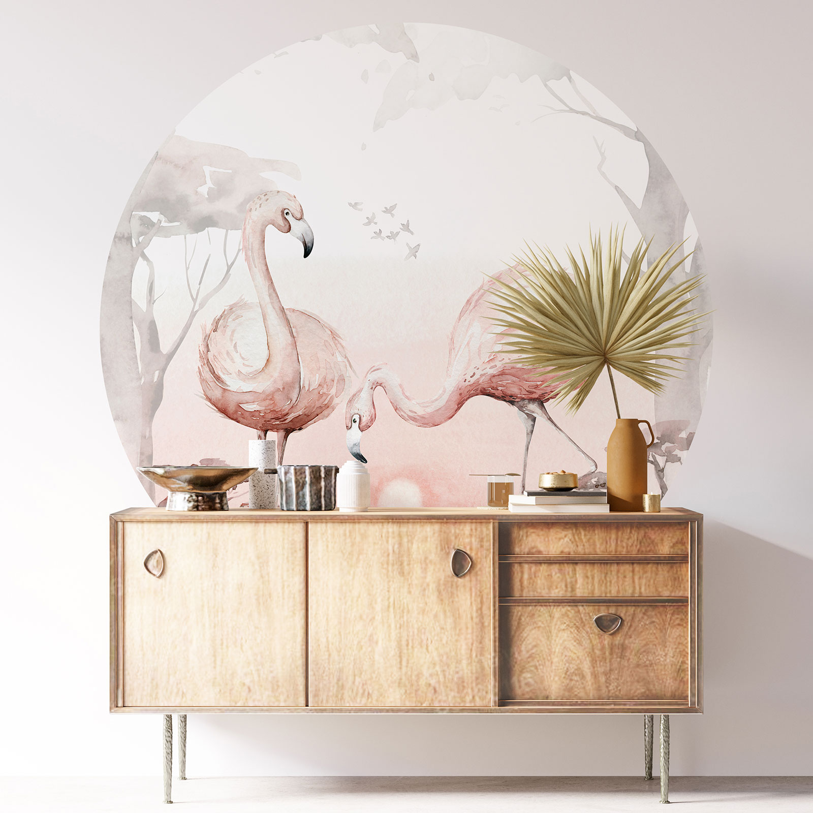 Vinilo Adhesivo Decorativo Redondo - Flamencos Rosados