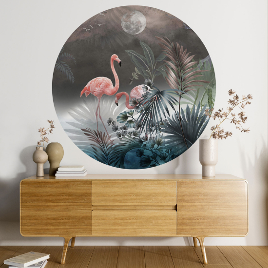 Vinilo Adhesivo Decorativo Redondo - Flamencos Rosados