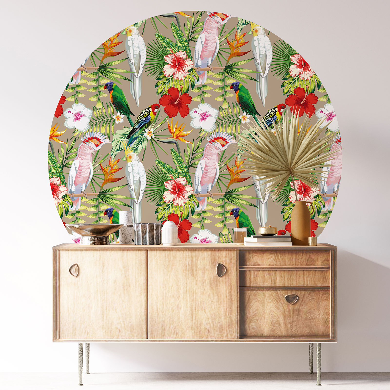 Vinilo Adhesivo Decorativo Redondo - Flores Pájaros