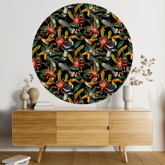 Vinilo Adhesivo Decorativo Redondo - Flores Pájaros