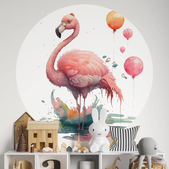Vinilo Adhesivo Decorativo Redondo para niños - Infantiles - Flamenco rosa