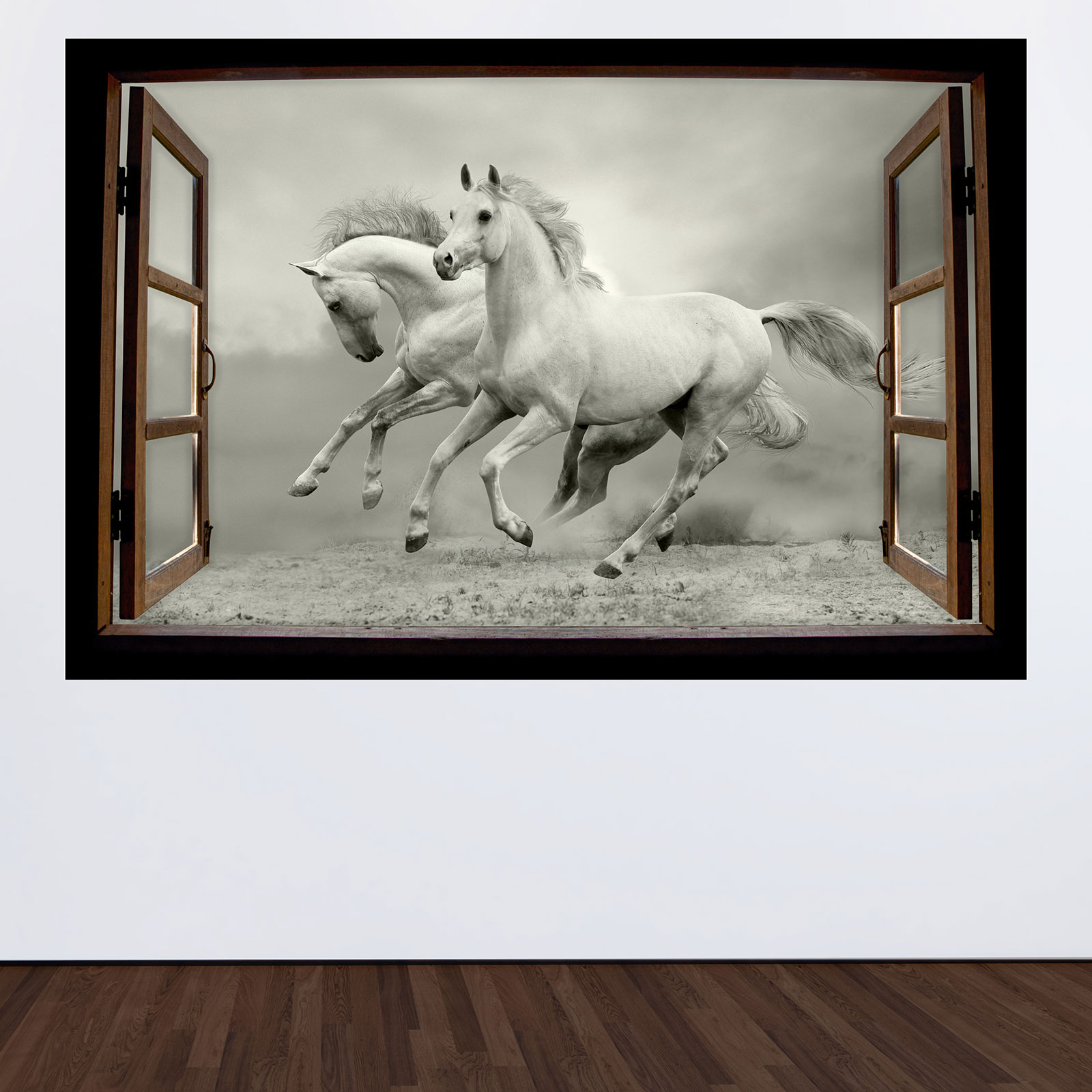 www.lumalea.es > Vinilos > Vinilos Decorativos Trampantojo 3D > Vinilos Decorativos Ventanas de Madera > Vinilo Adhesivo Decorativo trampantojo 3D - Caballos