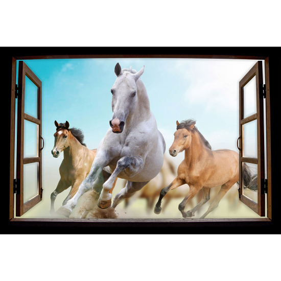 www.lumalea.es > Vinilos > Vinilos Decorativos Trampantojo 3D > Vinilos Decorativos Ventanas de Madera > Vinilo Adhesivo Decorativo trampantojo 3D - Caballos