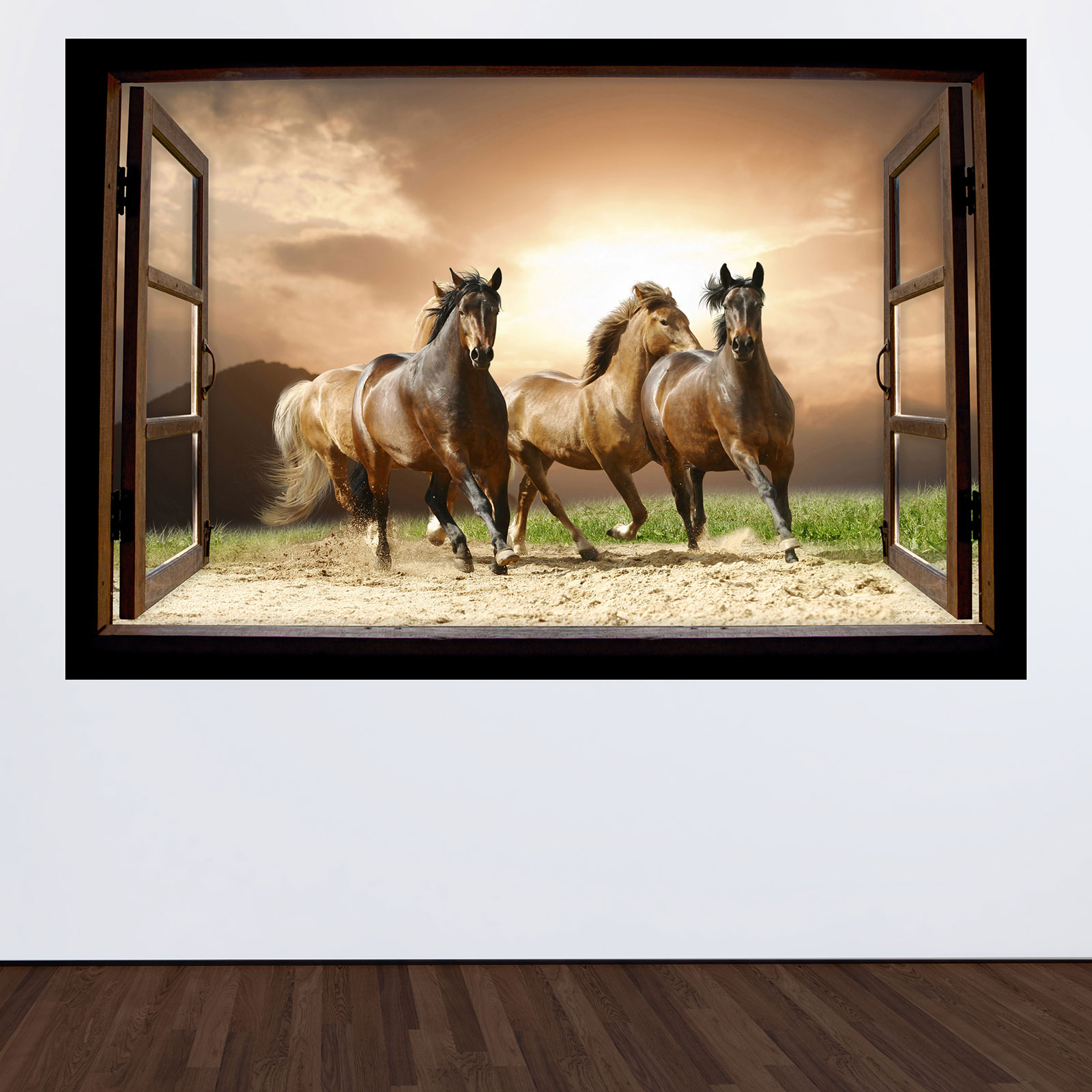 www.lumalea.es > Vinilos > Vinilos Decorativos Trampantojo 3D > Vinilos Decorativos Ventanas de Madera > Vinilo Adhesivo Decorativo trampantojo 3D - Caballos