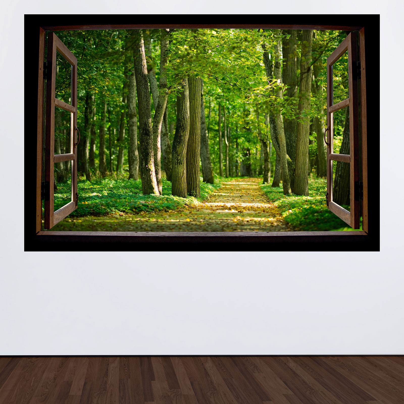www.lumalea.es > Vinilos > Vinilos Decorativos Trampantojo 3D > Vinilos Decorativos Ventanas de Madera > Vinilo Adhesivo Decorativo trampantojo 3D - Camino bosque