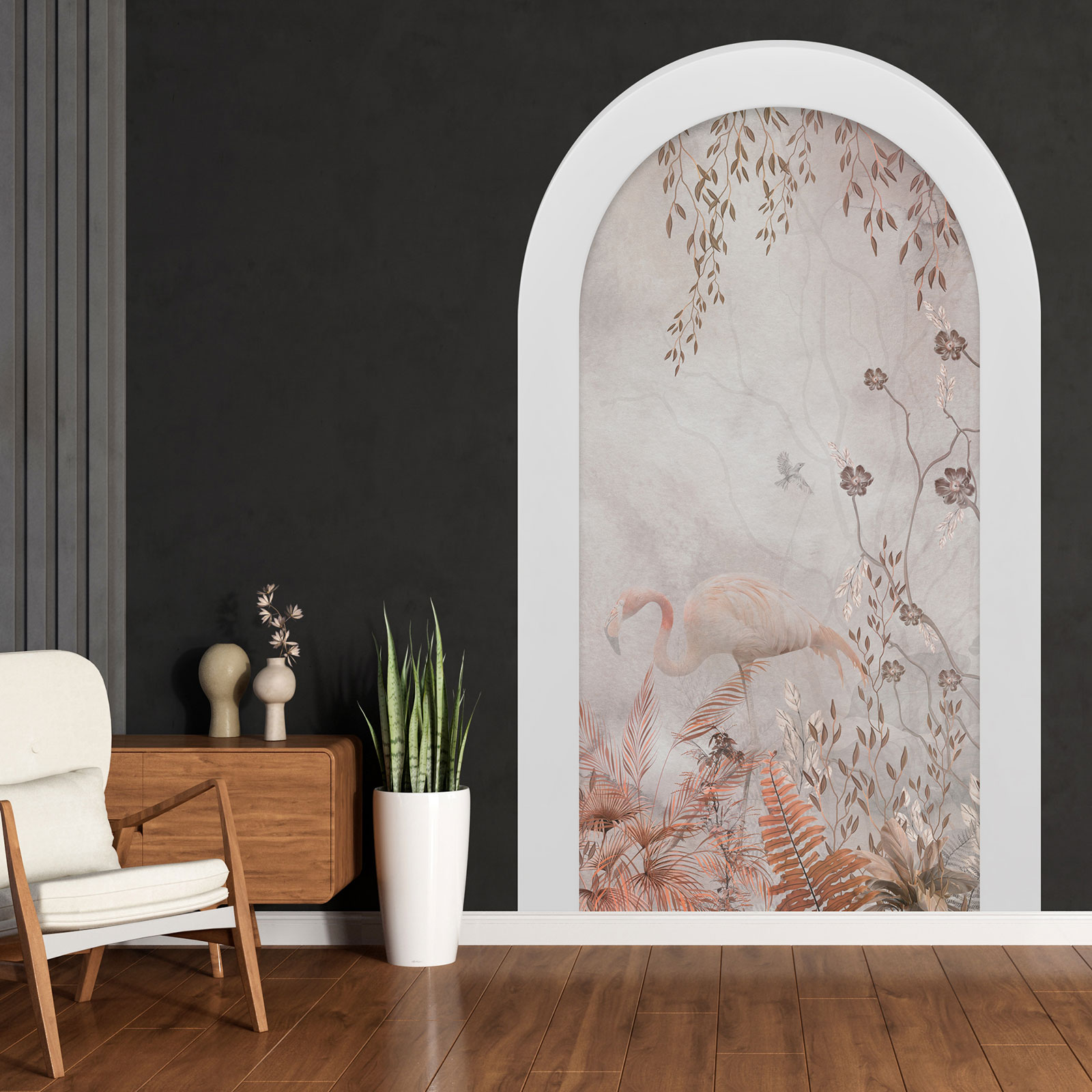 www.lumalea.es > Vinilos > Vinilos Decorativos Trampantojo 3D > Vinilos Arcos > Modelo 2 > Vinilo Adhesivo Decorativo trampantojo 3D - Flamenco Rosa