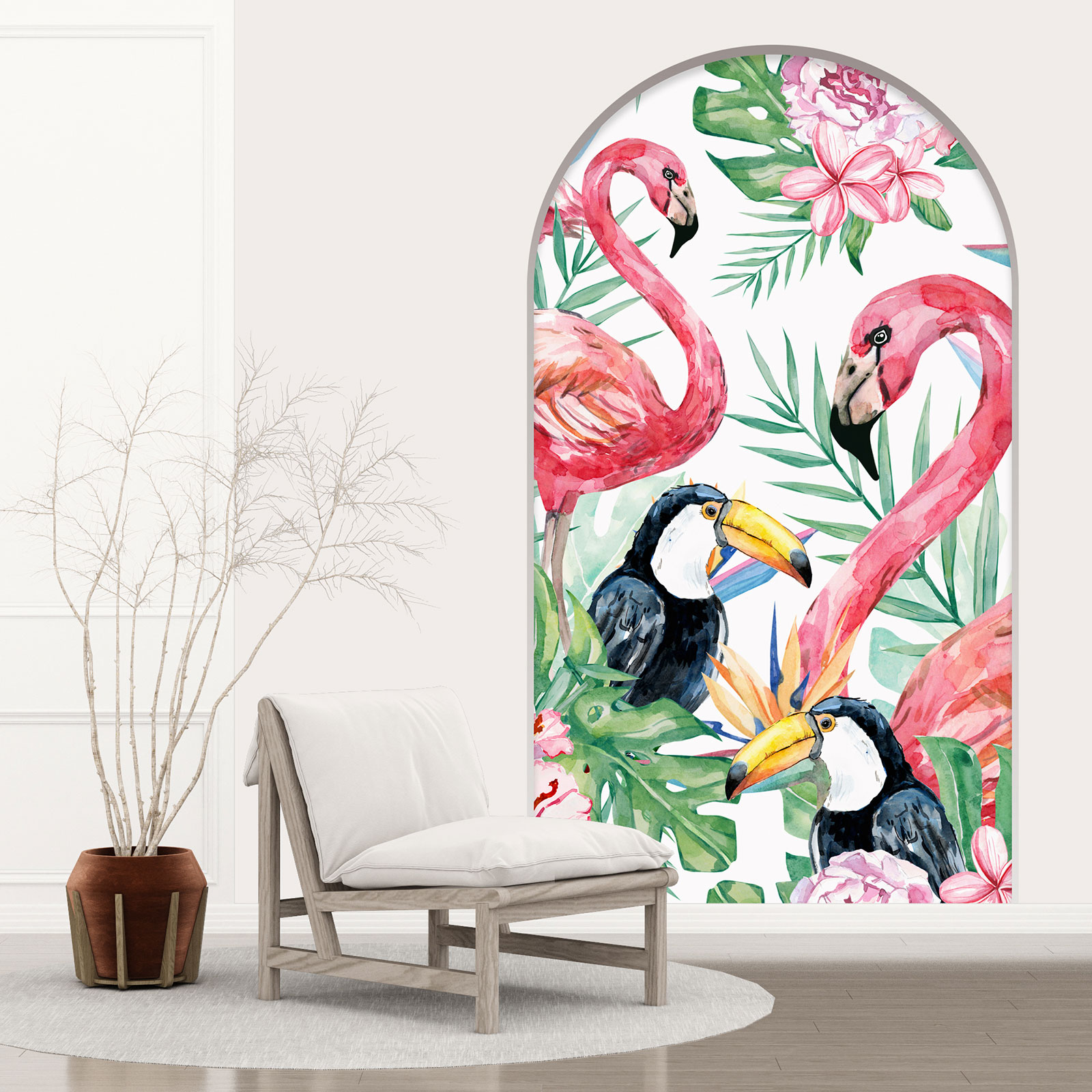 www.lumalea.es > Vinilos > Vinilos Decorativos Trampantojo 3D > Vinilos Arcos > Modelo 1 > Vinilo Adhesivo Decorativo trampantojo 3D - Flamencos Rosados