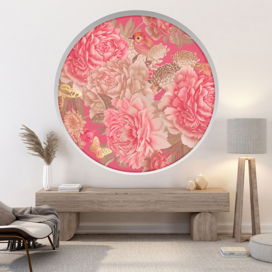 www.lumalea.es > Vinilos > Vinilos Decorativos Trampantojo 3D > Vinilos Decorativos Arcos Redondos > Vinilo Adhesivo Decorativo trampantojo 3D - Flores pájaro