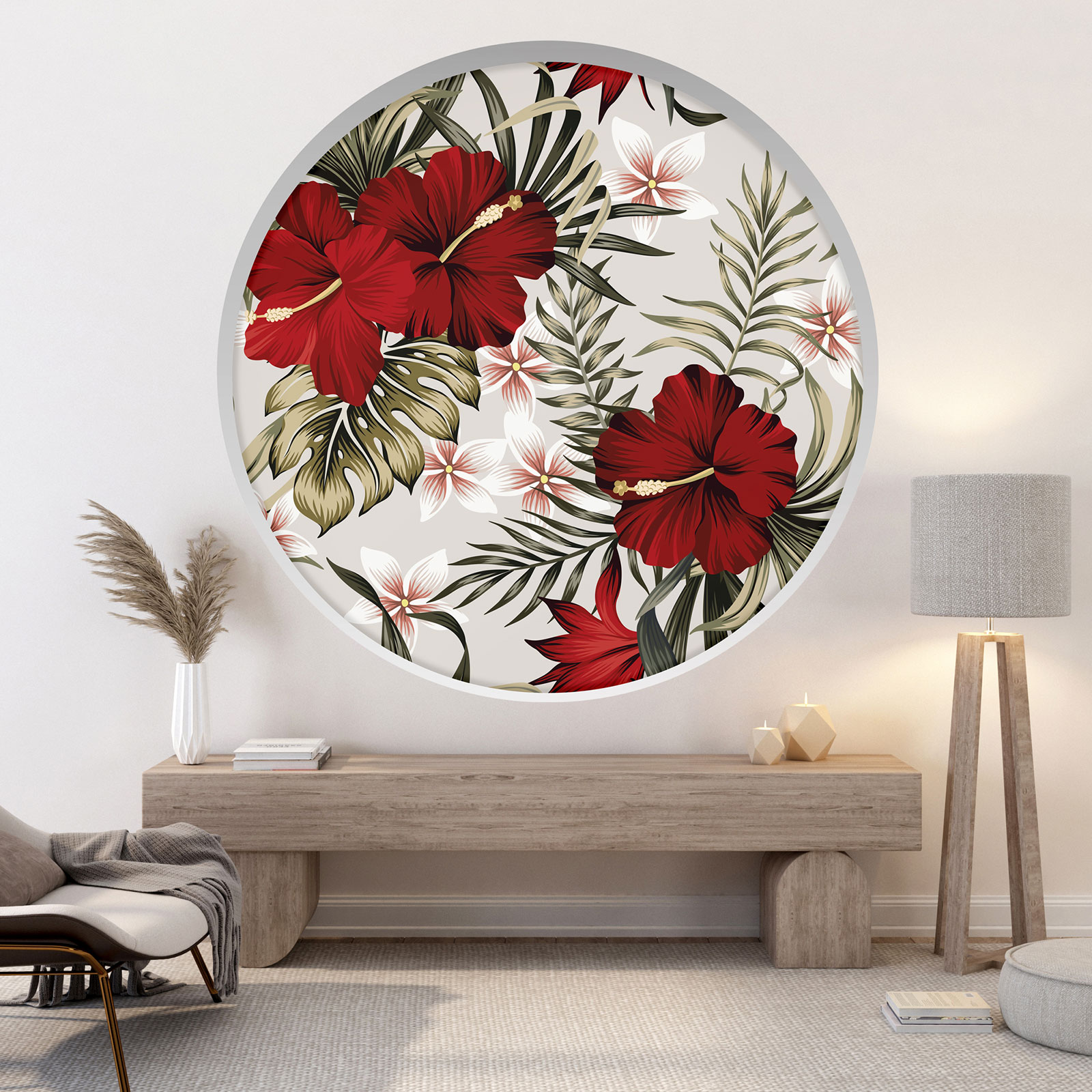 www.lumalea.es > Vinilos > Vinilos Decorativos Trampantojo 3D > Vinilos Decorativos Arcos Redondos > Vinilo Adhesivo Decorativo trampantojo 3D - Flores tropicales
