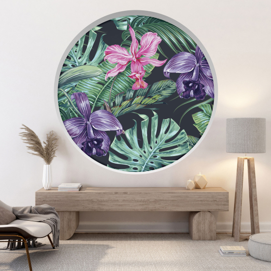 www.lumalea.es > Vinilos > Vinilos Decorativos Trampantojo 3D > Vinilos Decorativos Arcos Redondos > Vinilo Adhesivo Decorativo trampantojo 3D - Flores tropicales