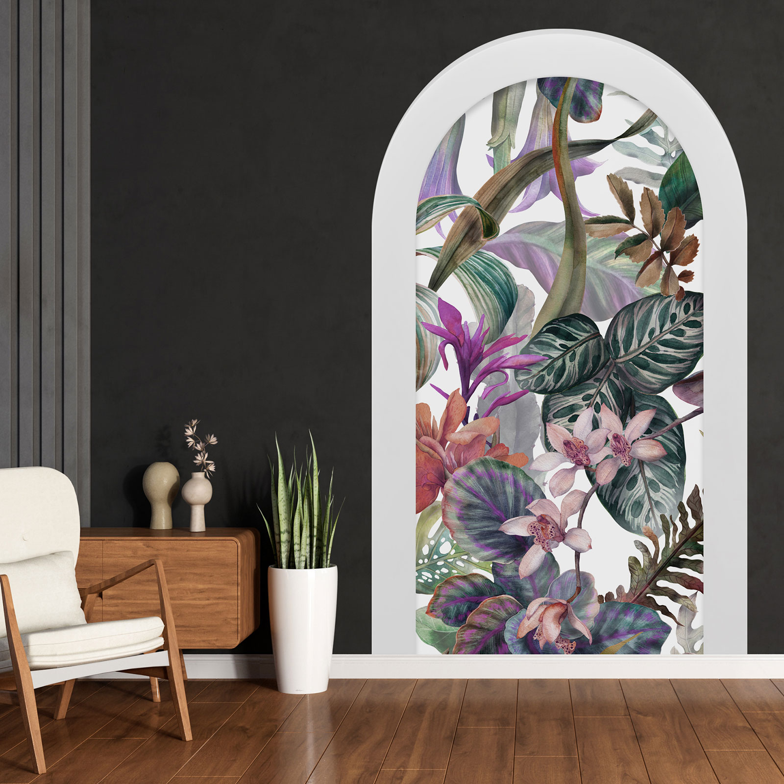www.lumalea.es > Vinilos > Vinilos Decorativos Trampantojo 3D > Vinilos Arcos > Modelo 2 > Vinilo Adhesivo Decorativo trampantojo 3D - Hojas Tropicales