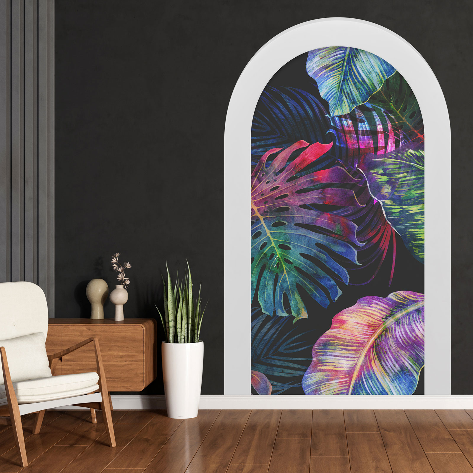 www.lumalea.es > Vinilos > Vinilos Decorativos Trampantojo 3D > Vinilos Arcos > Modelo 2 > Vinilo Adhesivo Decorativo trampantojo 3D - Hojas Tropicales