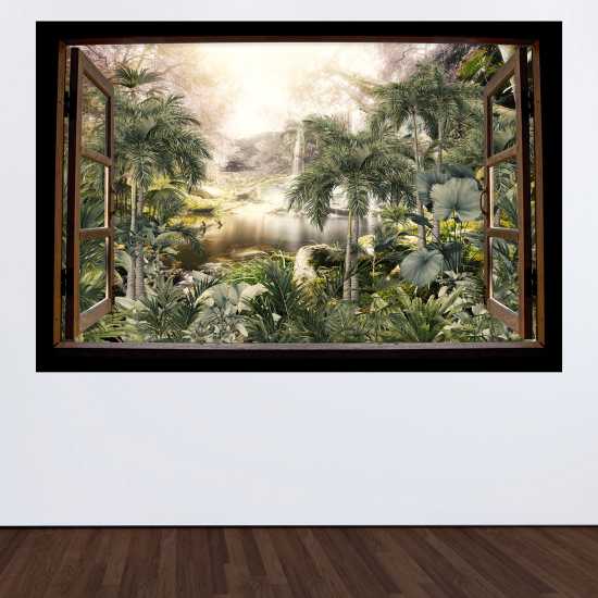 www.lumalea.es > Vinilos > Vinilos Decorativos Trampantojo 3D > Vinilos Decorativos Ventanas de Madera > Vinilo Adhesivo Decorativo trampantojo 3D - Jungla