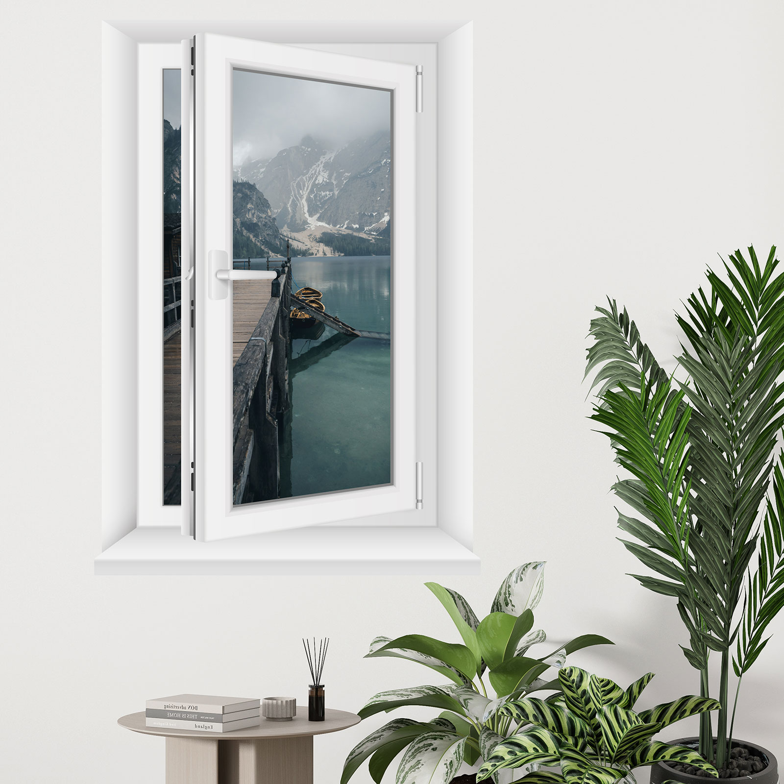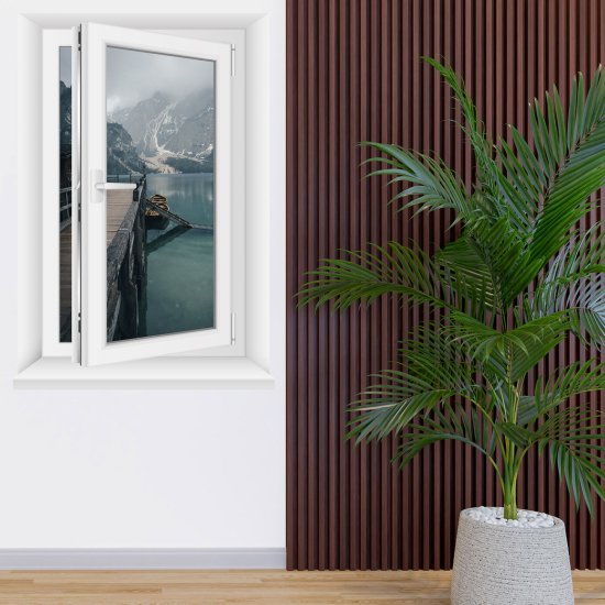 www.lumalea.es > Vinilos > Vinilos Decorativos Trampantojo 3D > Vinilos de ventanas 3 > Vinilo Adhesivo Decorativo trampantojo 3D - Lago Montañas