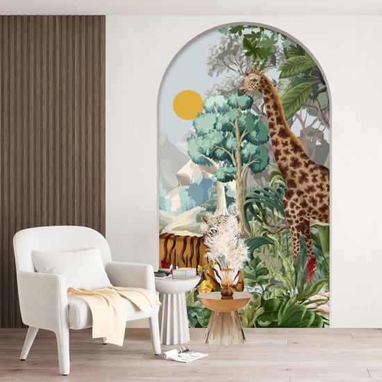 www.lumalea.es > Vinilos > Vinilos Decorativos Trampantojo 3D > Vinilos Arcos > Modelo 1 > Vinilo Adhesivo Decorativo trampantojo 3D para niños - Infantil - Animales de la jungla