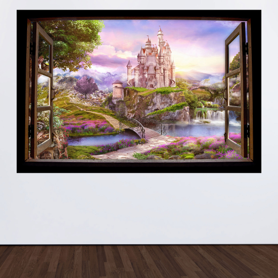 www.lumalea.es > Vinilos > Vinilos Decorativos Trampantojo 3D > Vinilos Decorativos Ventanas de Madera > Vinilo Adhesivo Decorativo trampantojo 3D para niños - Infantil - Castillo