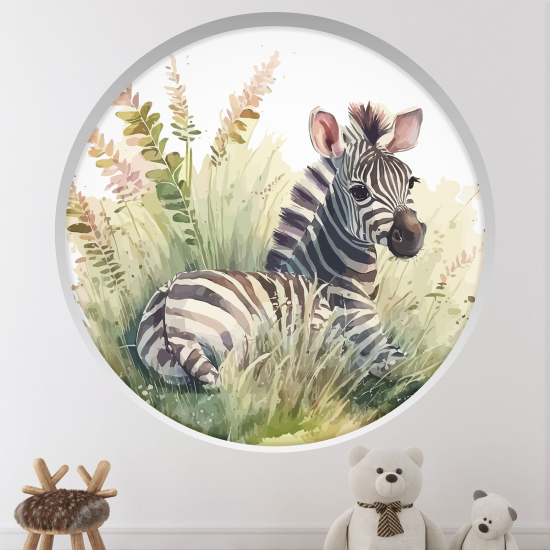 www.lumalea.es > Vinilos > Vinilos Decorativos Trampantojo 3D > Vinilos Decorativos Arcos Redondos > Vinilo Adhesivo Decorativo trampantojo 3D para niños - Infantil - Cebra
