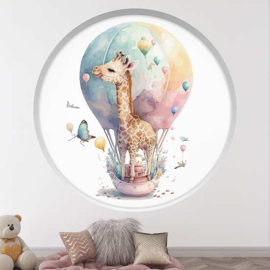 Vinilo Adhesivo Decorativo trampantojo 3D para niños - Infantil - Jirafa en globo aerostático