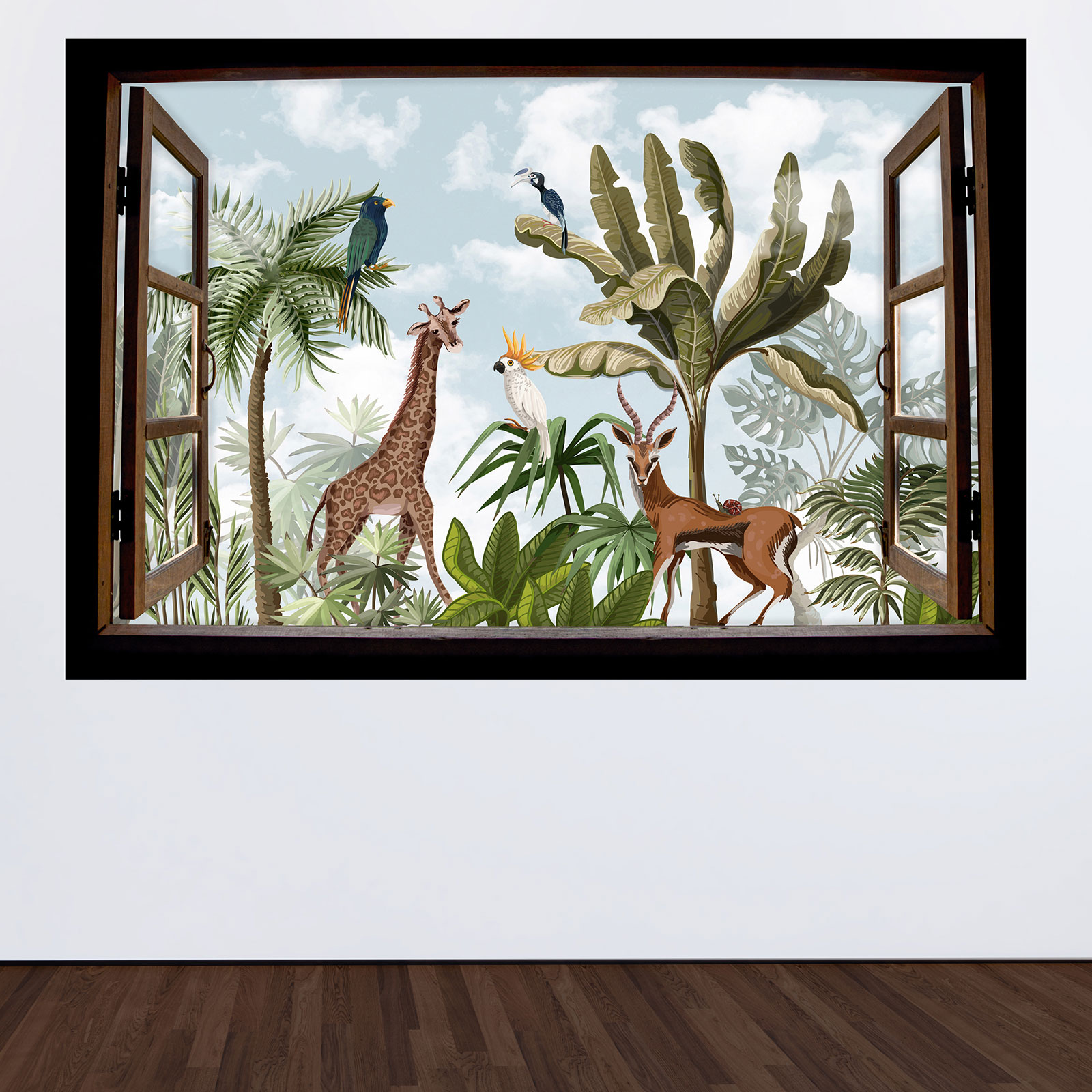 www.lumalea.es > Vinilos > Vinilos Decorativos Trampantojo 3D > Vinilos Decorativos Ventanas de Madera > Vinilo Adhesivo Decorativo trampantojo 3D para niños - Infantil - Jungla