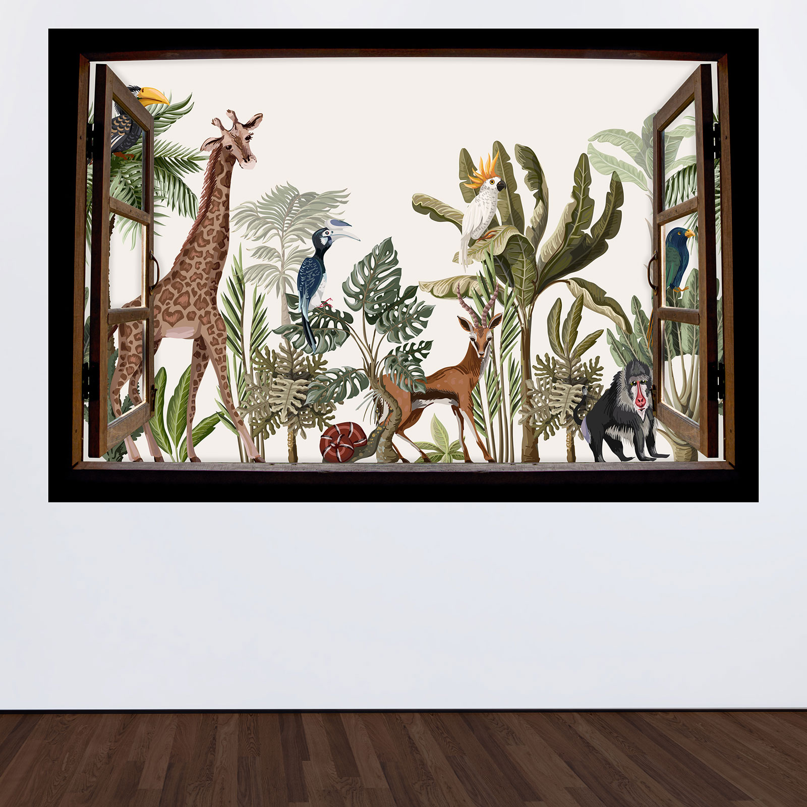 www.lumalea.es > Vinilos > Vinilos Decorativos Trampantojo 3D > Vinilos Decorativos Ventanas de Madera > Vinilo Adhesivo Decorativo trampantojo 3D para niños - Infantil - Jungla