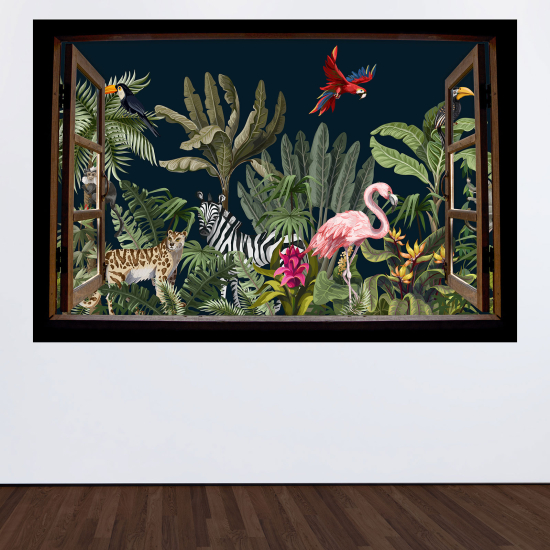 www.lumalea.es > Vinilos > Vinilos Decorativos Trampantojo 3D > Vinilos Decorativos Ventanas de Madera > Vinilo Adhesivo Decorativo trampantojo 3D para niños - Infantil - Jungla