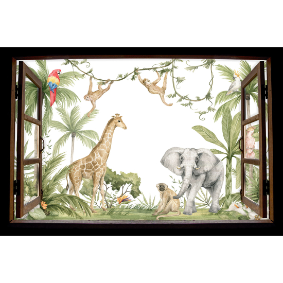 www.lumalea.es > Vinilos > Vinilos Decorativos Trampantojo 3D > Vinilos Decorativos Ventanas de Madera > Vinilo Adhesivo Decorativo trampantojo 3D para niños - Infantil - Jungla