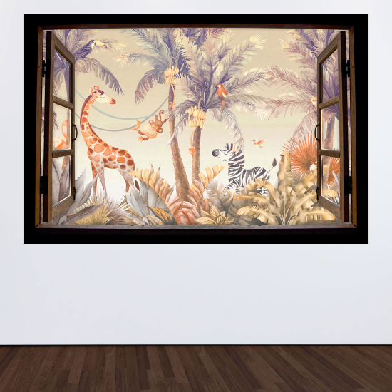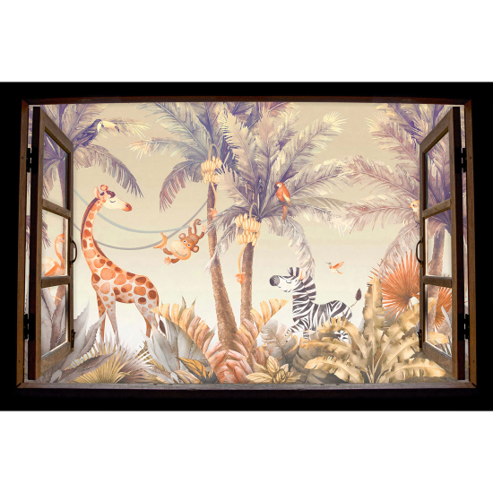 www.lumalea.es > Vinilos > Vinilos Decorativos Trampantojo 3D > Vinilos Decorativos Ventanas de Madera > Vinilo Adhesivo Decorativo trampantojo 3D para niños - Infantil - Jungla