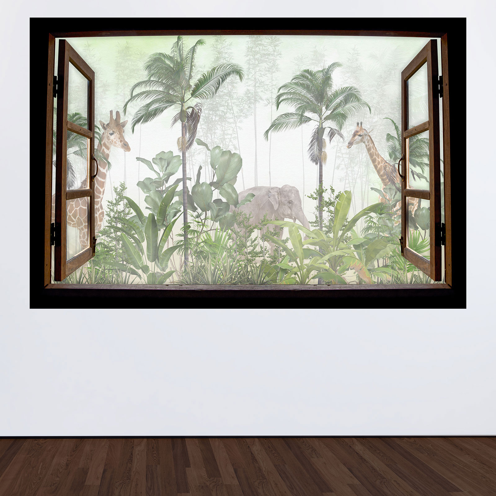 www.lumalea.es > Vinilos > Vinilos Decorativos Trampantojo 3D > Vinilos Decorativos Ventanas de Madera > Vinilo Adhesivo Decorativo trampantojo 3D para niños - Infantil - Jungla