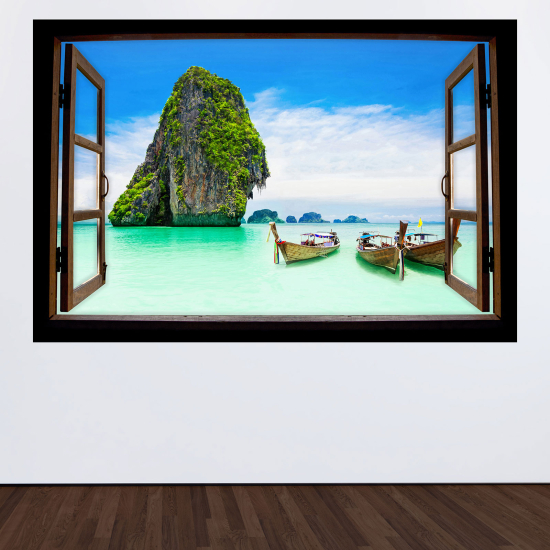 www.lumalea.es > Vinilos > Vinilos Decorativos Trampantojo 3D > Vinilos Decorativos Ventanas de Madera > Vinilo Adhesivo Decorativo trampantojo 3D - Paradisíaco