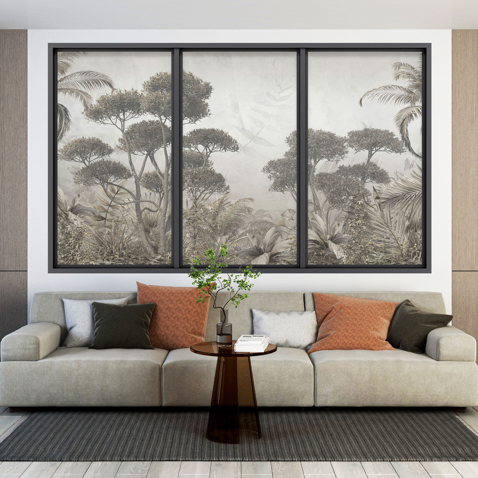 www.lumalea.es > Vinilos > Vinilos Decorativos Trampantojo 3D > Vinilos Decorativos Ventanas de Aluminio > Vinilo Adhesivo Decorativo trampantojo 3D - Selva Tropical