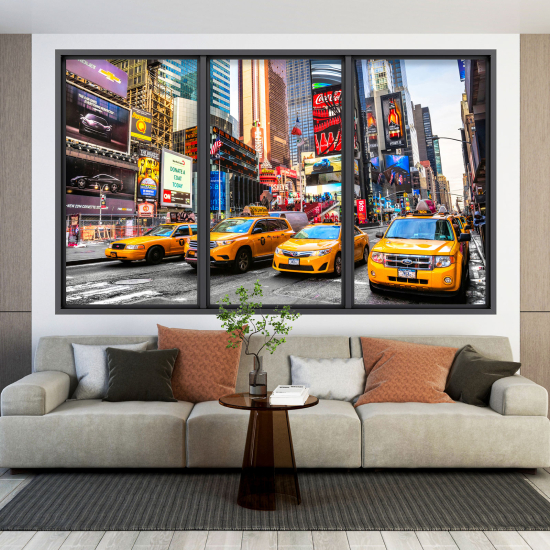 www.lumalea.es > Vinilos > Vinilos Decorativos Trampantojo 3D > Vinilos Decorativos Ventanas de Aluminio > Vinilo Adhesivo Decorativo trampantojo 3D - Taxis de Nueva York