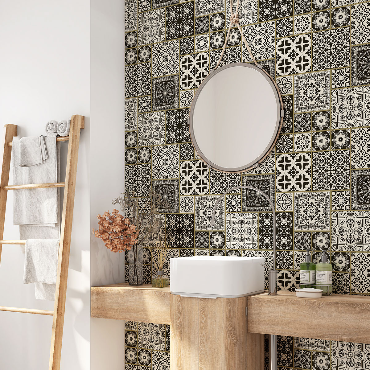 Nuestras credenzas adhesivas tienen diseños que se pueden combinar para extenderse sin límites en altura y anchura, lo que le permite cubrir completamente su pared sin restricciones.
