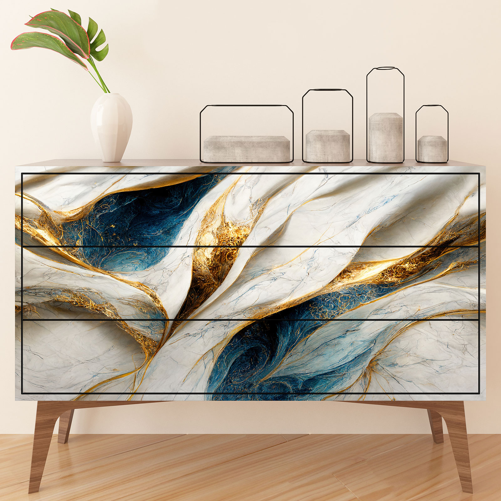 Crea una Nueva Estética: El relooking de muebles nunca ha sido tan simple. Nuestros adhesivos están diseñados para añadir instantáneamente un toque de estilo a tus muebles existentes. Ya sea que estés buscando crear un look vintage, moderno o incluso personalizado, nuestros adhesivos te permiten personalizar tus muebles según tus preferencias.