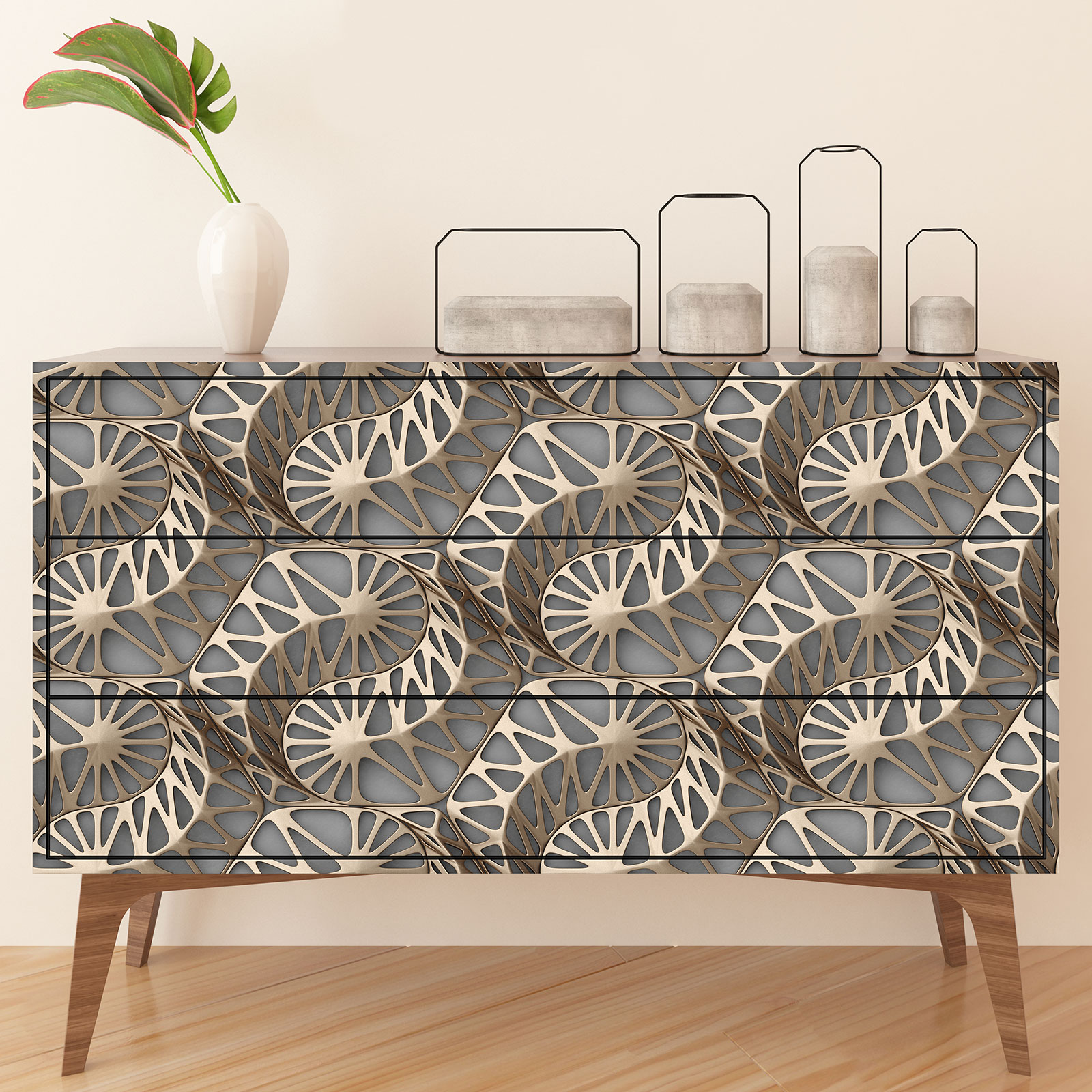 Crea una Nueva Estética: El relooking de muebles nunca ha sido tan simple. Nuestros adhesivos están diseñados para añadir instantáneamente un toque de estilo a tus muebles existentes. Ya sea que estés buscando crear un look vintage, moderno o incluso personalizado, nuestros adhesivos te permiten personalizar tus muebles según tus preferencias.