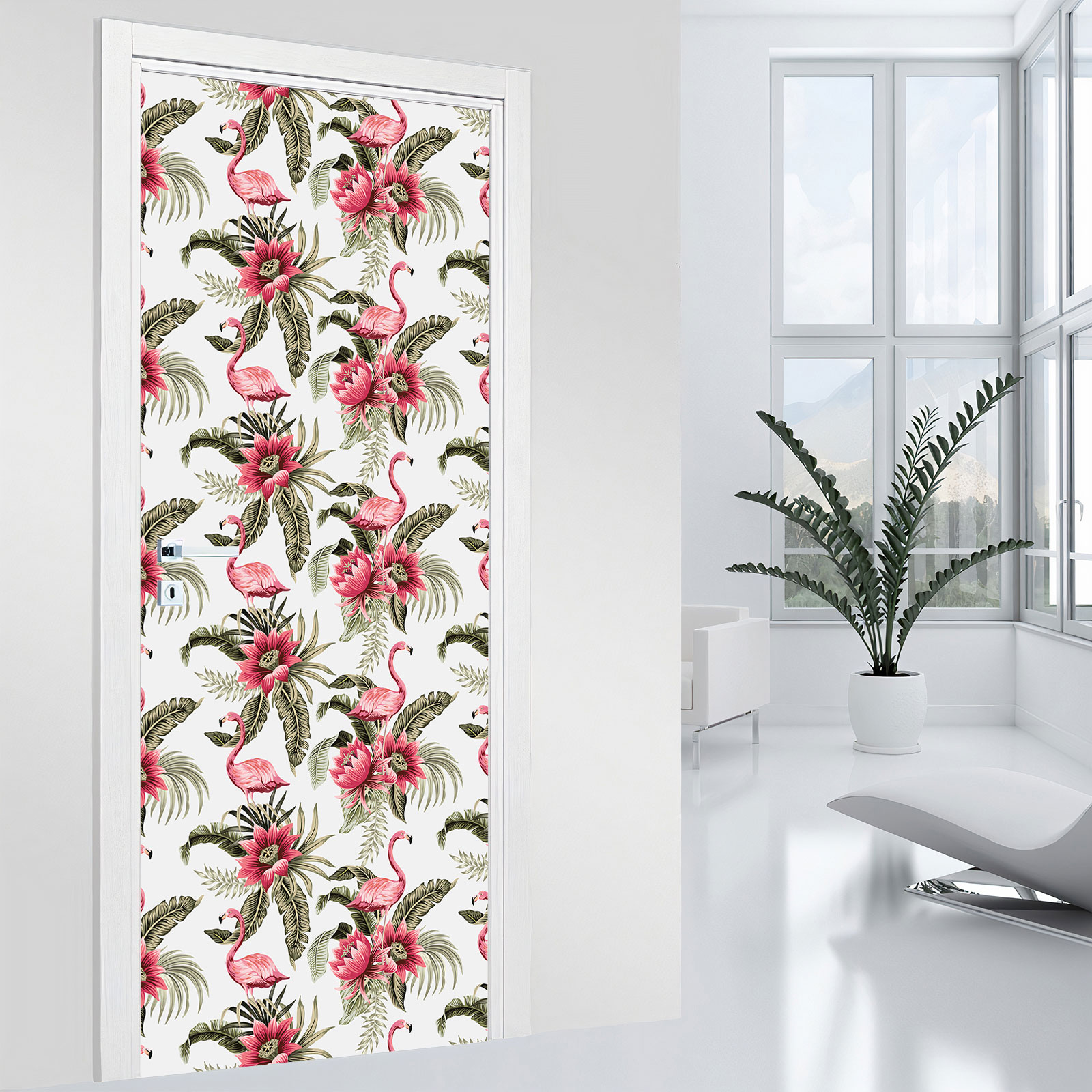 Vinilo Adhesivo para puerta - Flamencos rosas