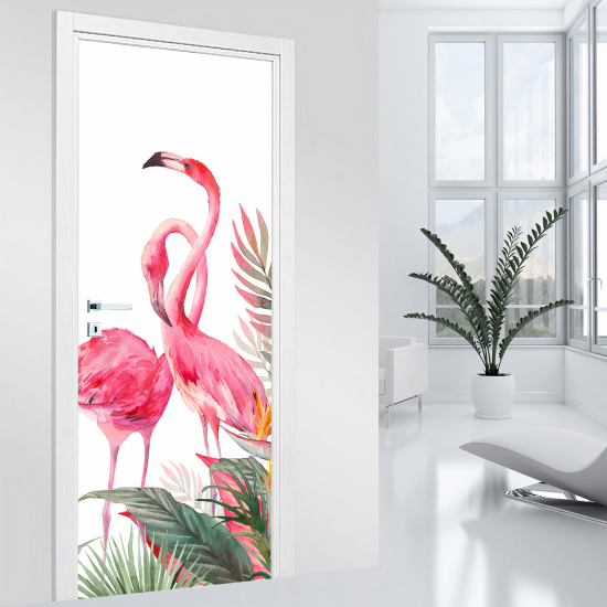 Vinilo Adhesivo para puerta - Flamencos rosas