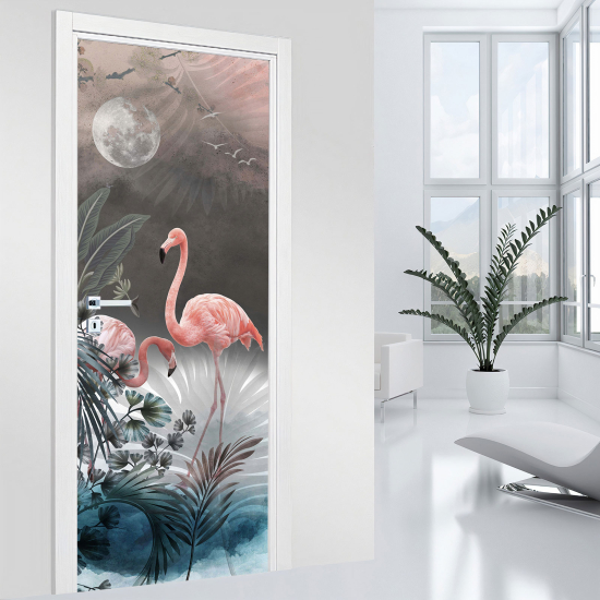 Vinilo Adhesivo para puerta - Flamencos rosas