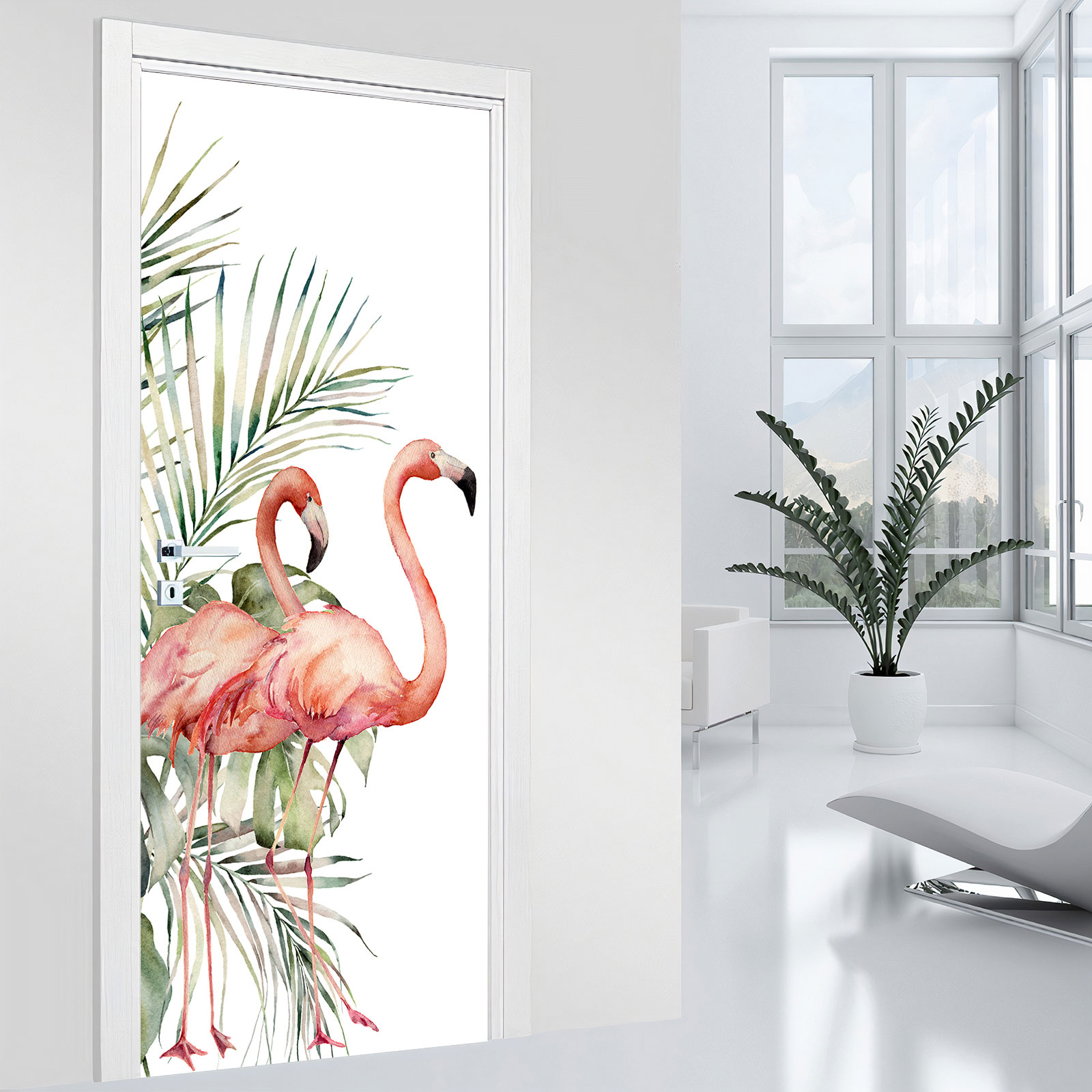 Vinilo Adhesivo para puerta - Flamencos rosas
