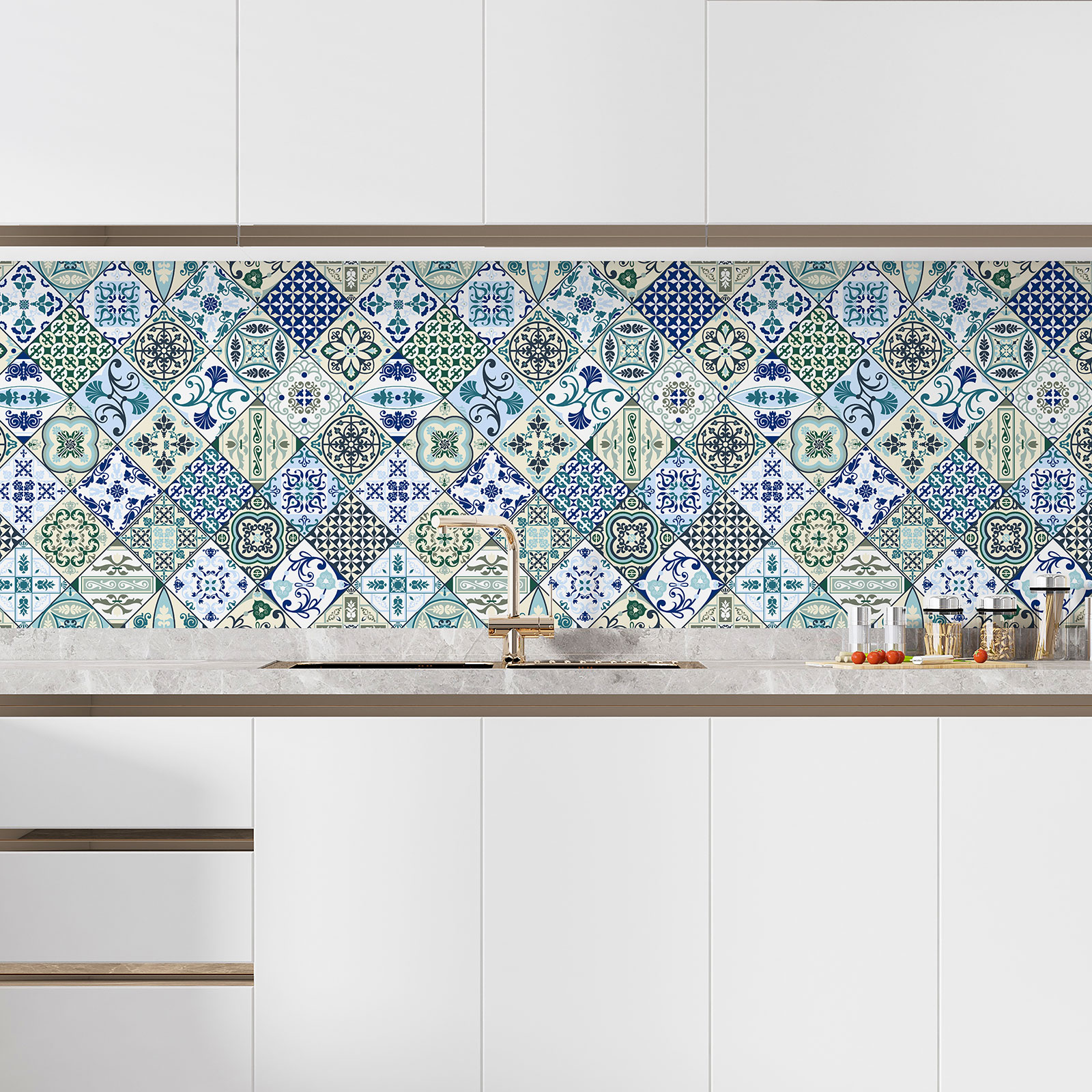 www.lumalea.es > Vinilos > Vinilos Salpicaderos Cocina > Vinilos Azulejos > Vinilo Adhesivo Salpicadero Cocina - Efecto baldosas hidráulicas