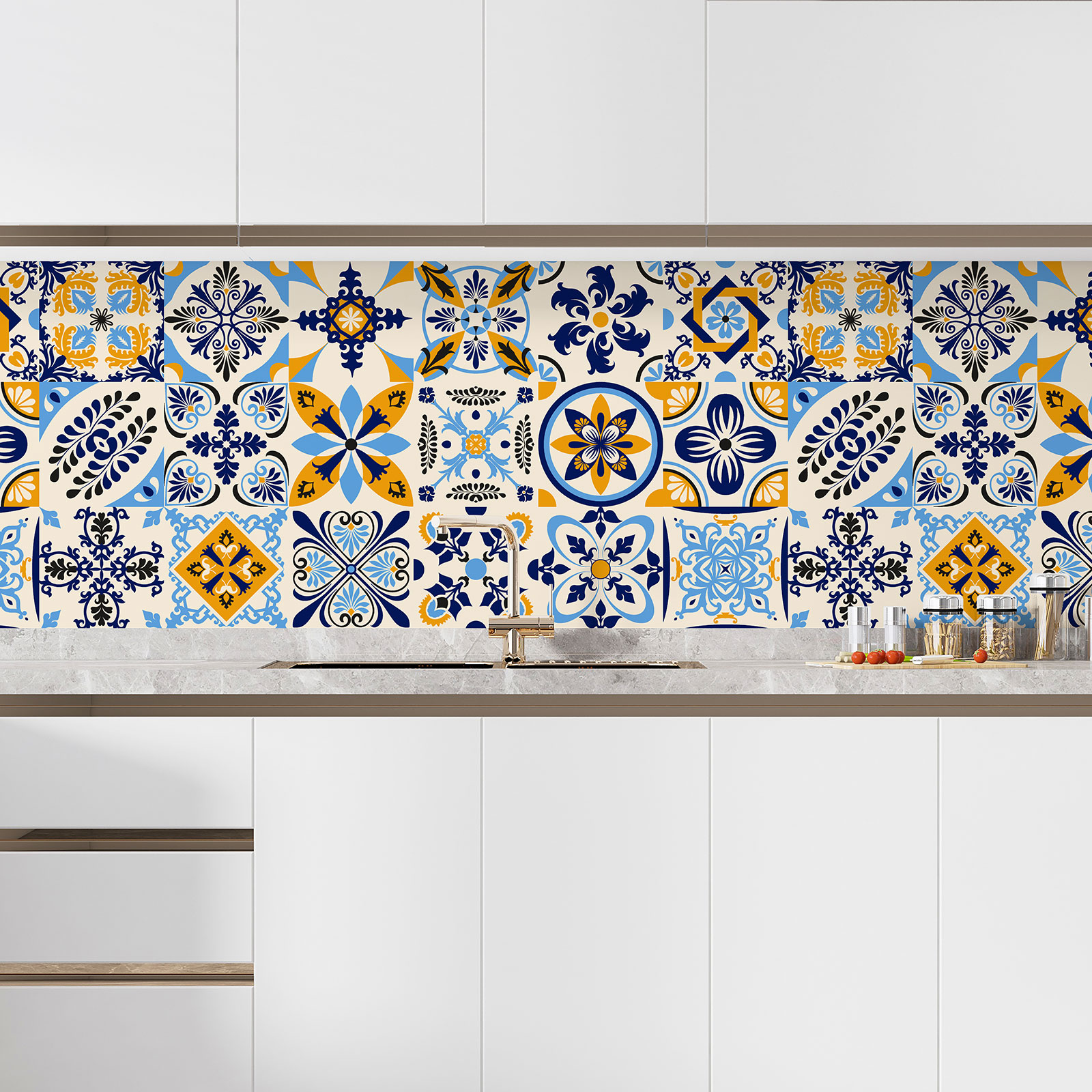 www.lumalea.es > Vinilos > Vinilos Salpicaderos Cocina > Vinilos Azulejos > Vinilo Adhesivo Salpicadero Cocina - Efecto baldosas hidráulicas