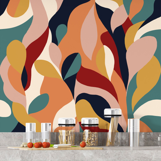 Vinilo Adhesivo Salpicadero Cocina - Hojas Abstractas
