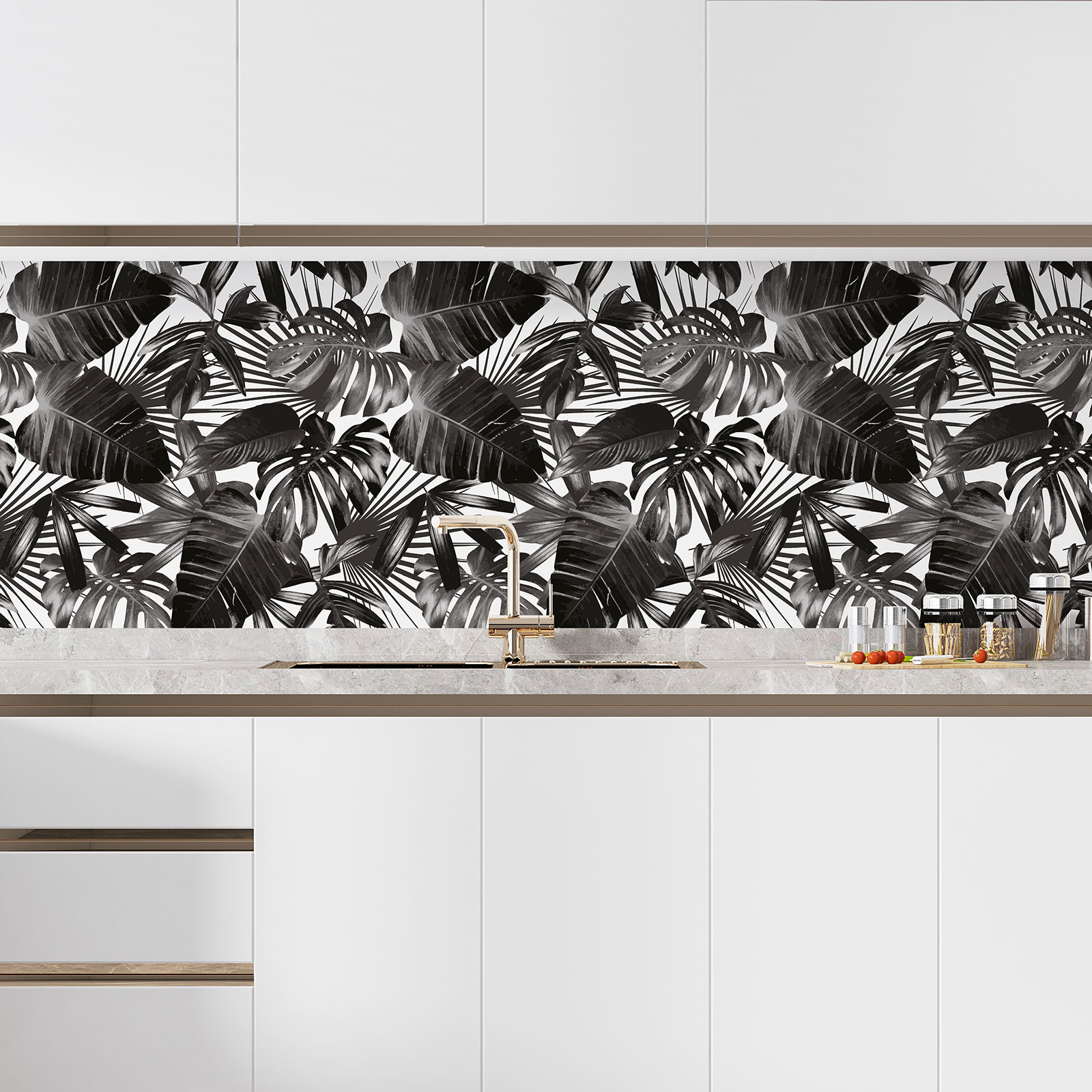 Vinilo Adhesivo Salpicadero Cocina - Hojas Tropicales