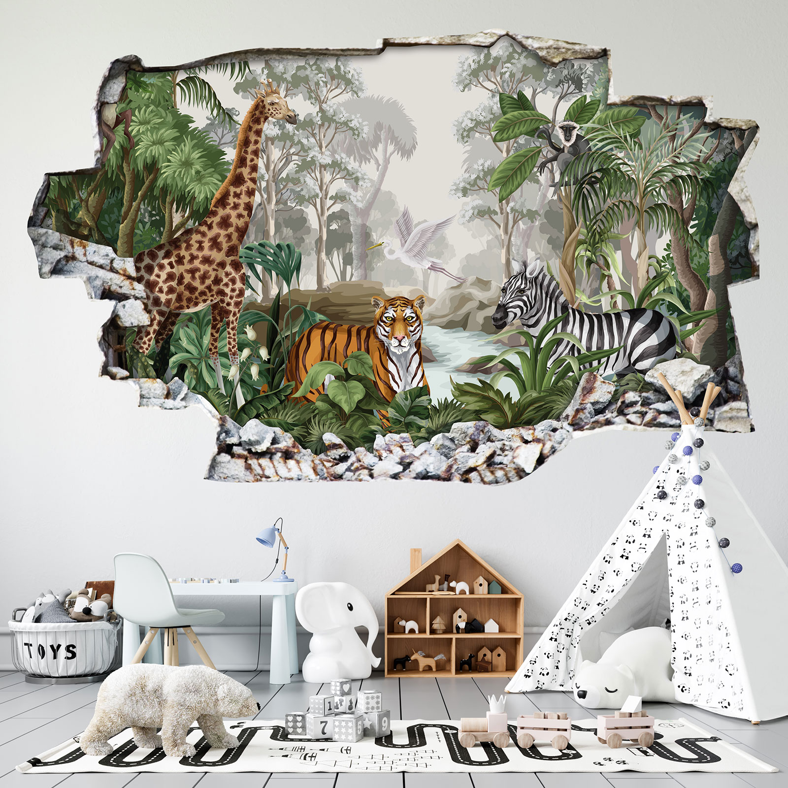 Vinilo Adhesivo trampantojo 3D - Animales de la Selva Tropical