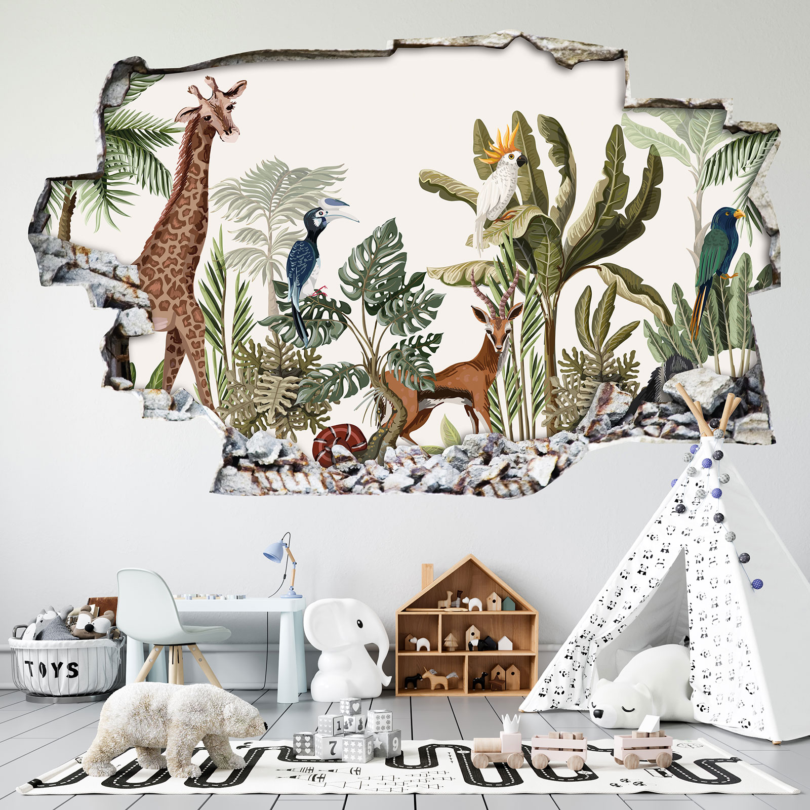 Vinilo Adhesivo trampantojo 3D - Animales de la Selva Tropical
