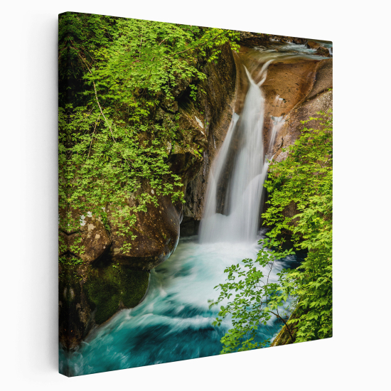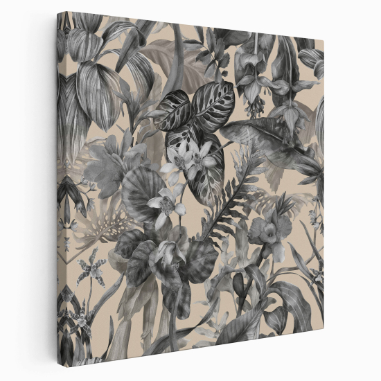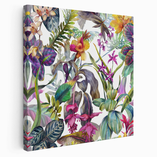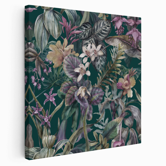 Lienzo cuadrado - Flamencos rosados y tucanes
