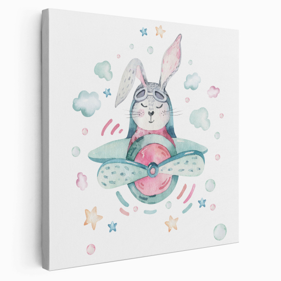 Lienzo cuadrado para niños - Infantil - Conejo Globo Aerostático